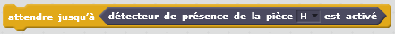 Il faut donc ajouter dans ce bloc d’attente un bloc « non » de la catégorie « Opérateurs » dans lequel on ajoute le bloc détectant la lumière dans la pièce H.