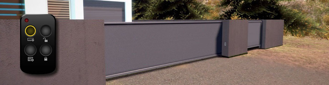 Portail automatique avec son contrôleur intégré. En mode Câblé, le portail se pilote avec la télécommande.