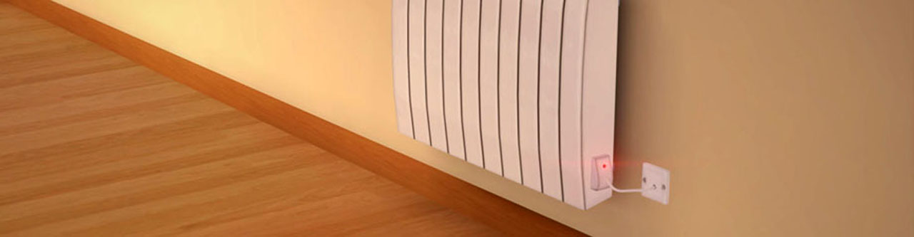 Chauffage électrique piloté par thermostat. Comprend une LED qui indique s’il est allumé ou éteint.