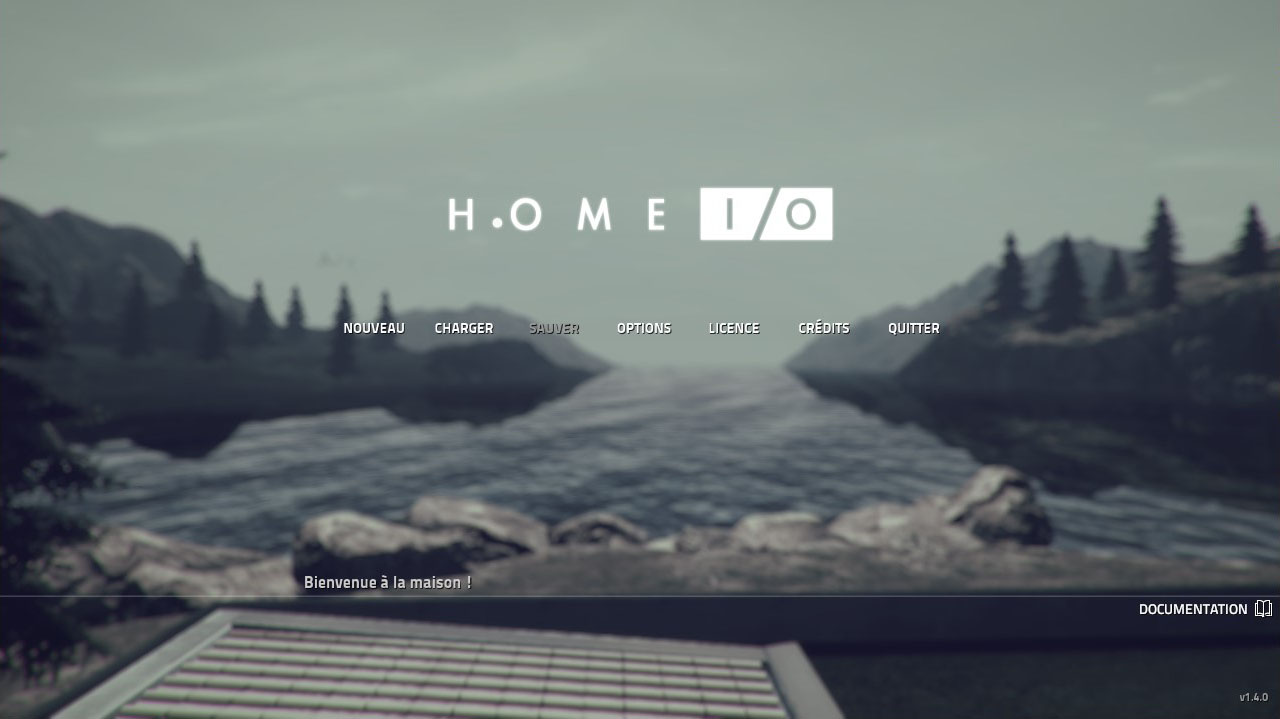 Une fois Home I/O lancé, le menu principal est affiché. Pendant la simulation, un appui sur la touche Echap permet de revenir au menu principal. Cliquer sur Reprendre permet de revenir à la simulation.